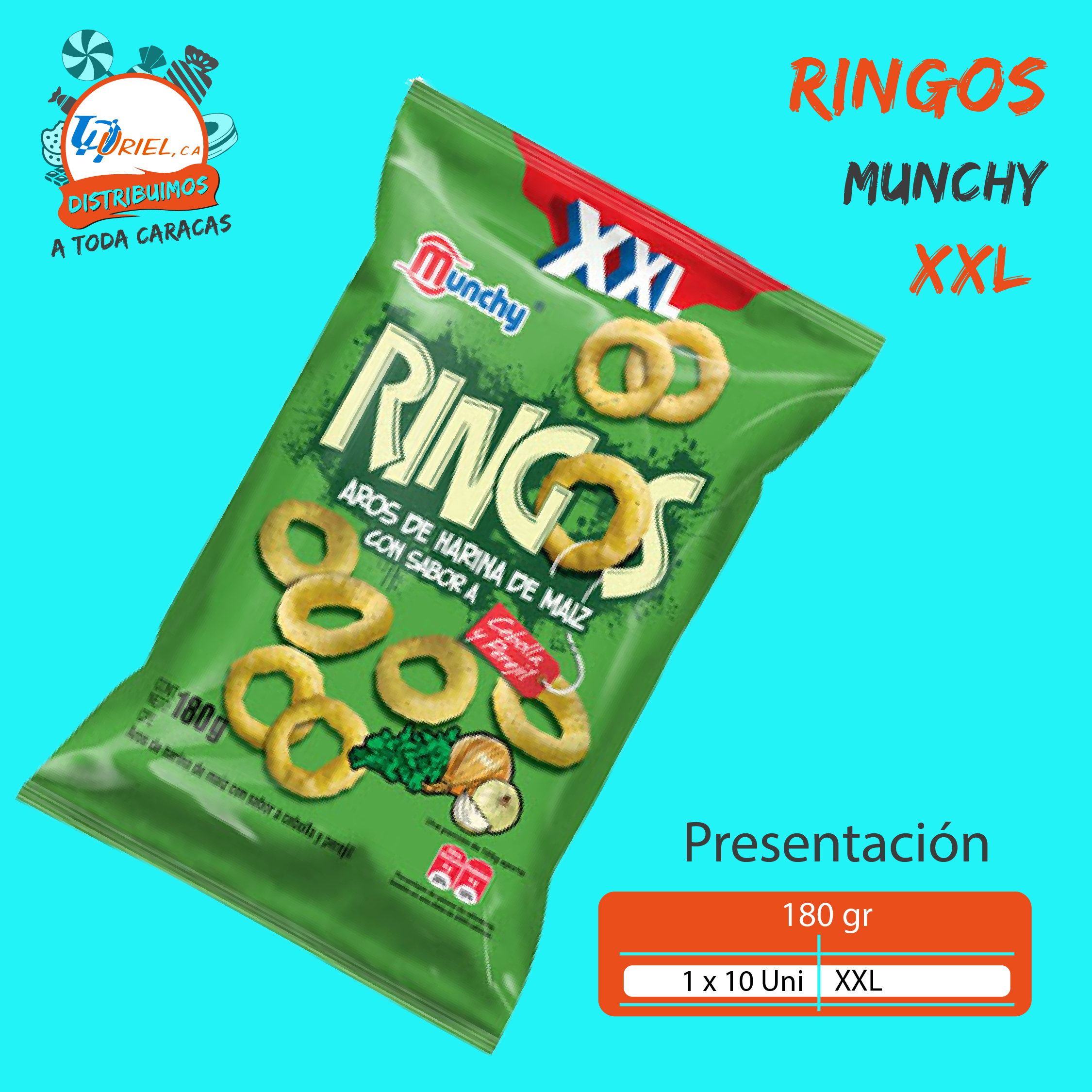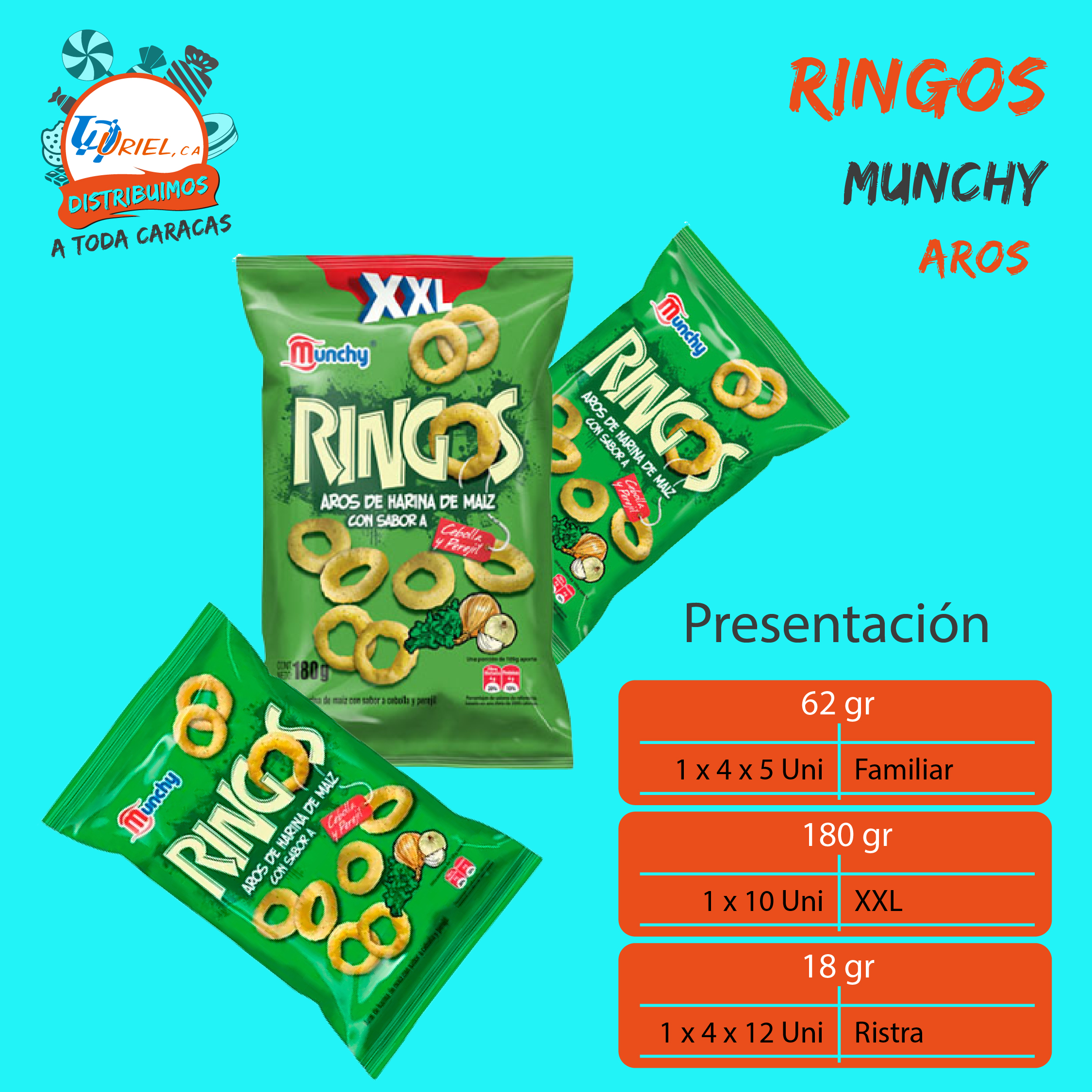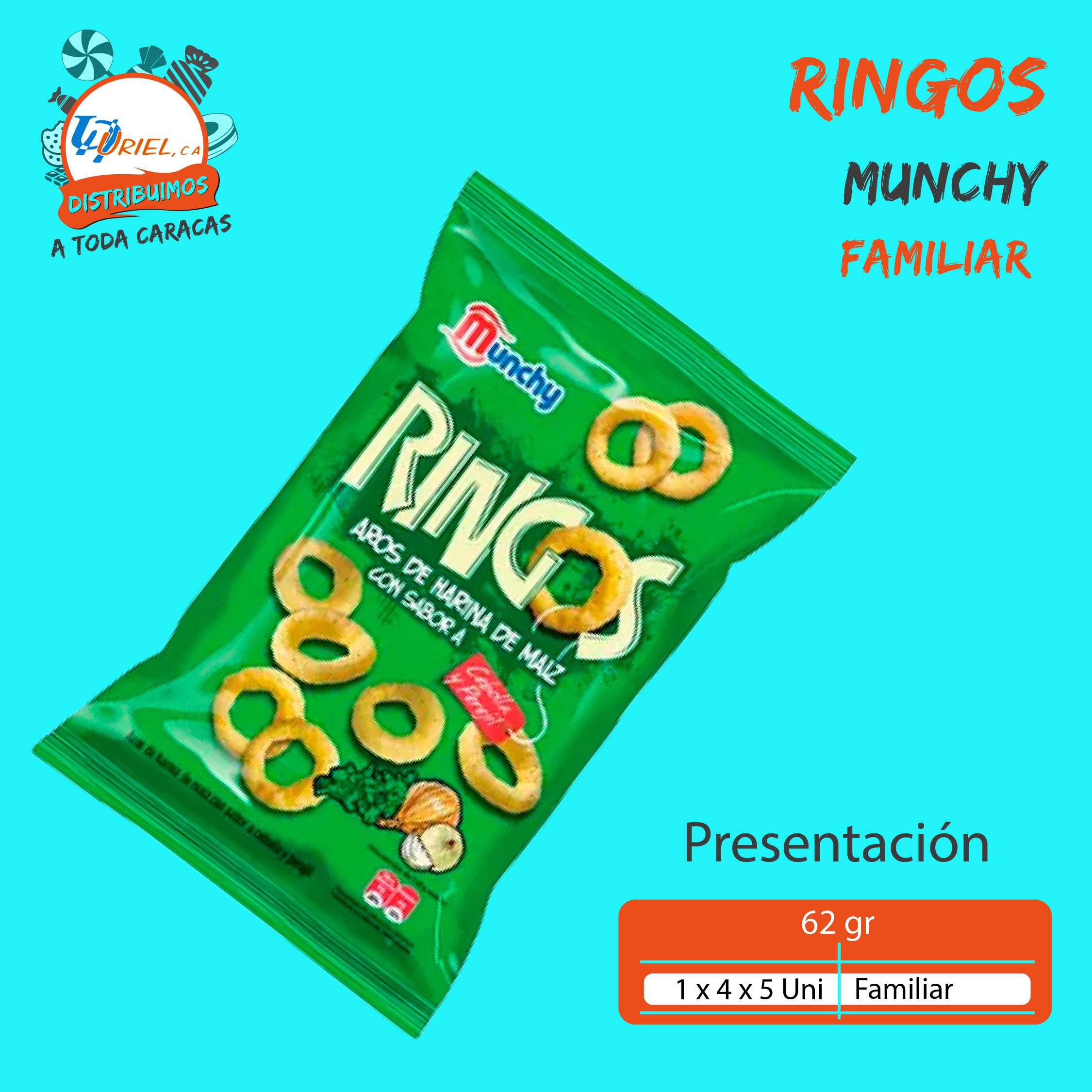 Aros Ringos Munchy en presentación de 18gr, 62gr y 180gr c/u.