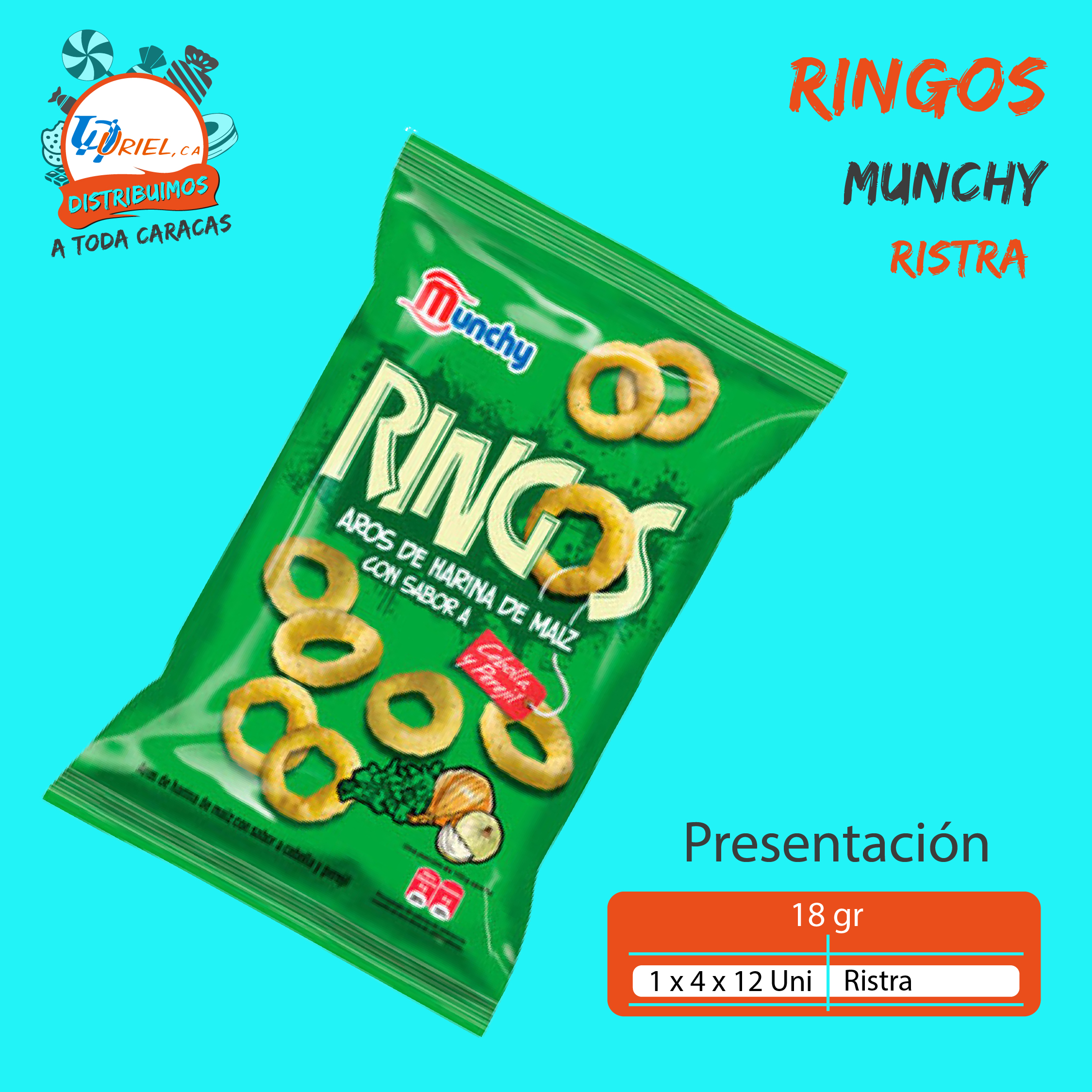 Aros Ringos Munchy son Aros de harina de maíz con sabor a cebolla y perejil.