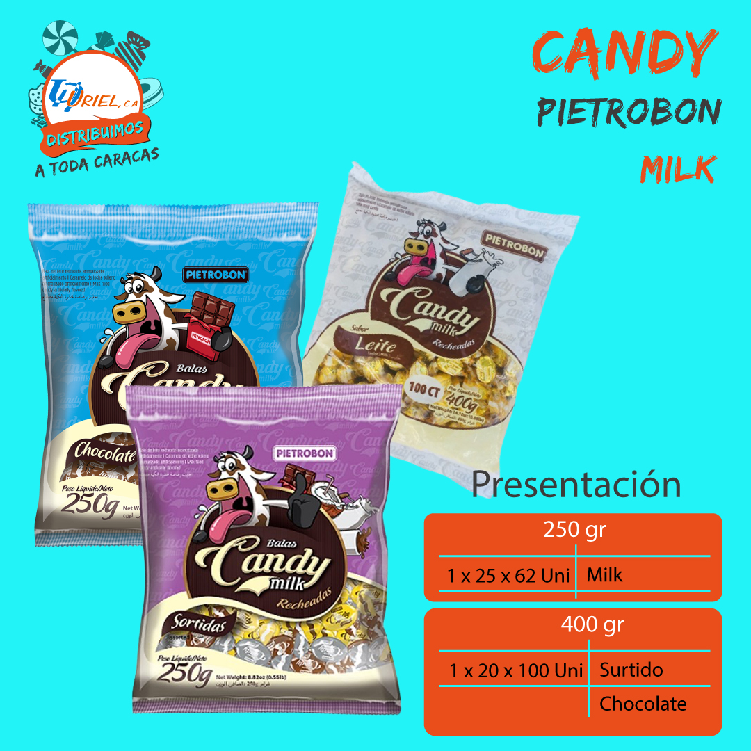 Caramelos Candy Milk Pietrobon 250 y 400 gr. Milk, Surtido y Chocolate