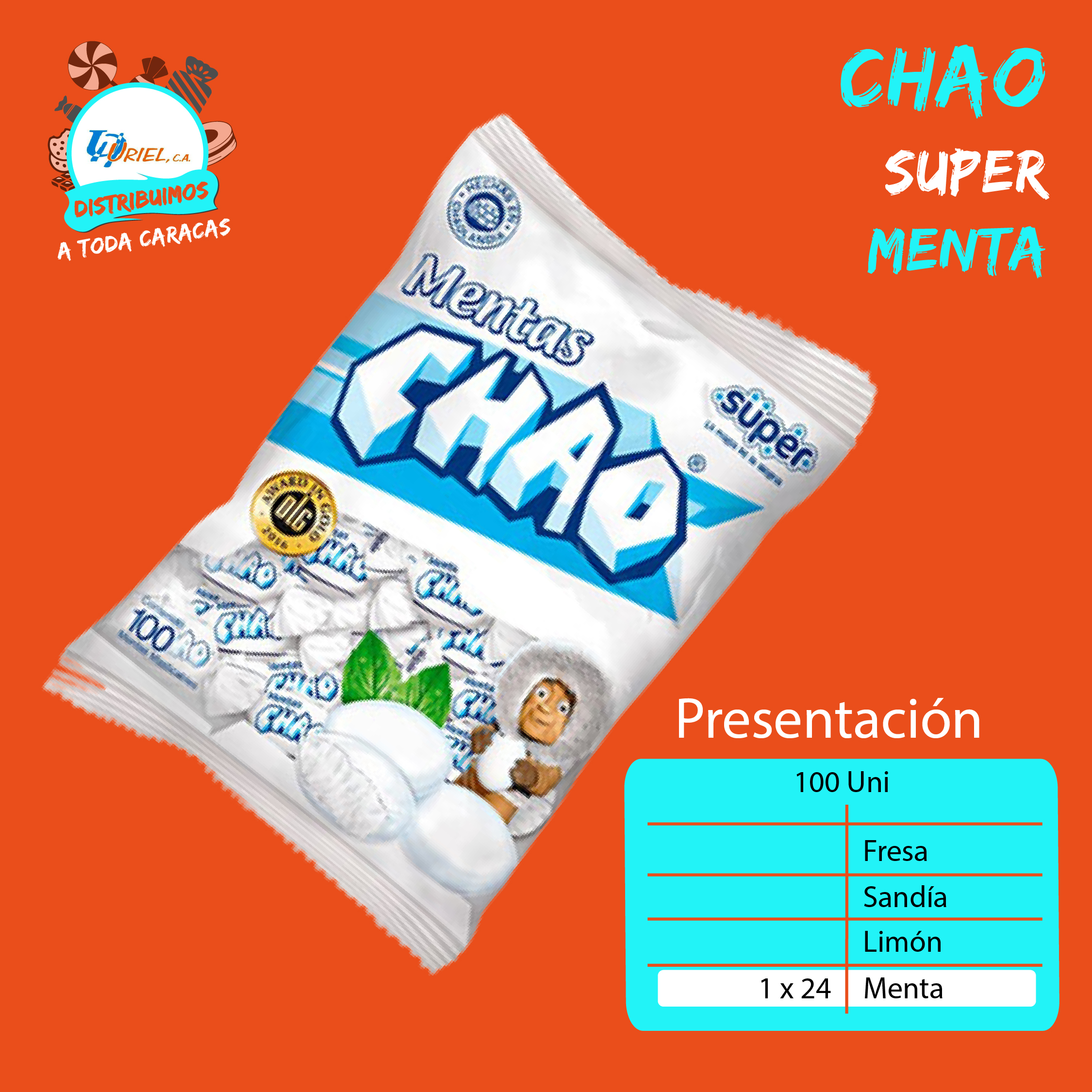 Caramelos Chao Super 100 Unidades, Sabor a Menta, limón, Sandía y Fresa.
