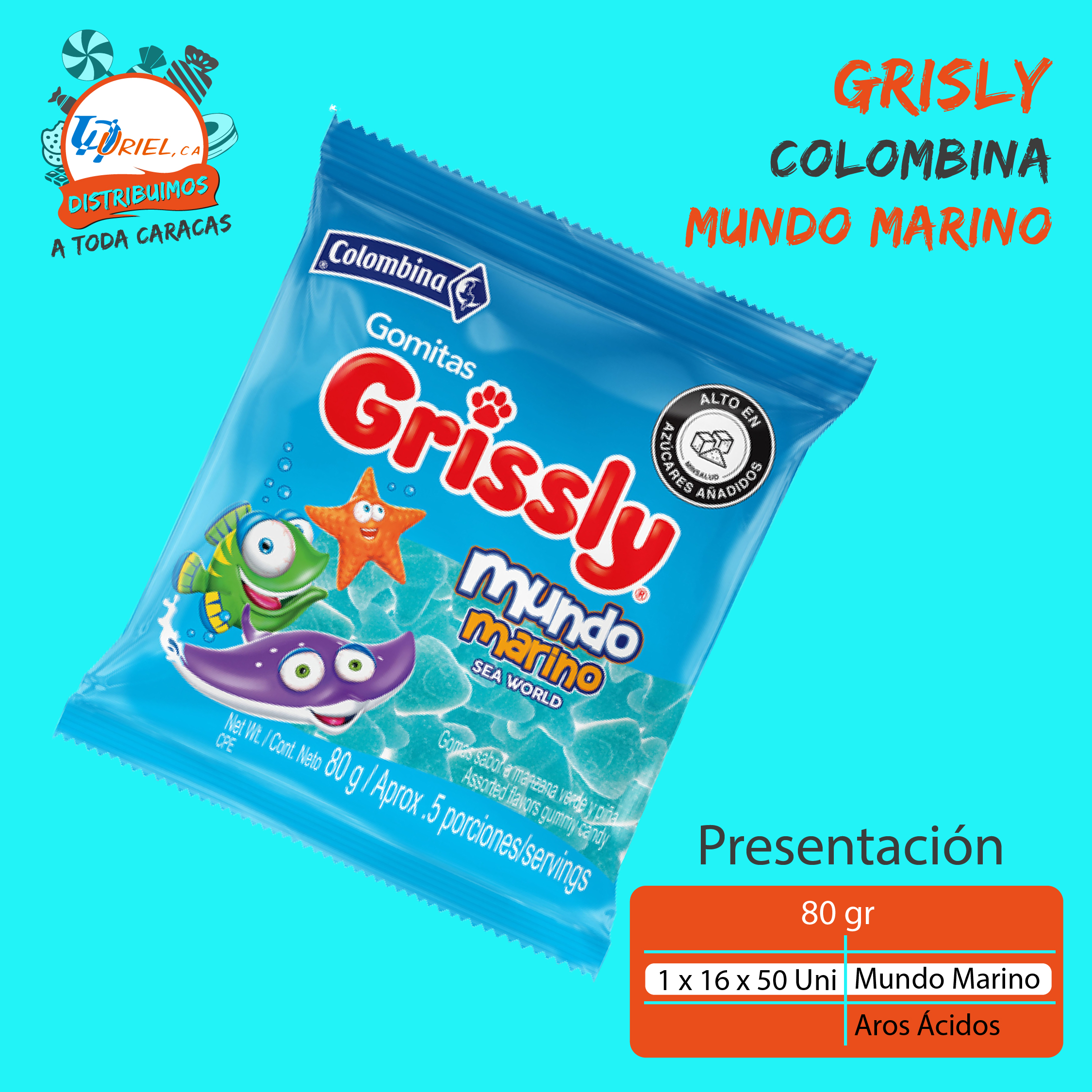 + ENVÍOGomitas Grissly Colombina 80gr, Mundo Marino y Aros Ácidos