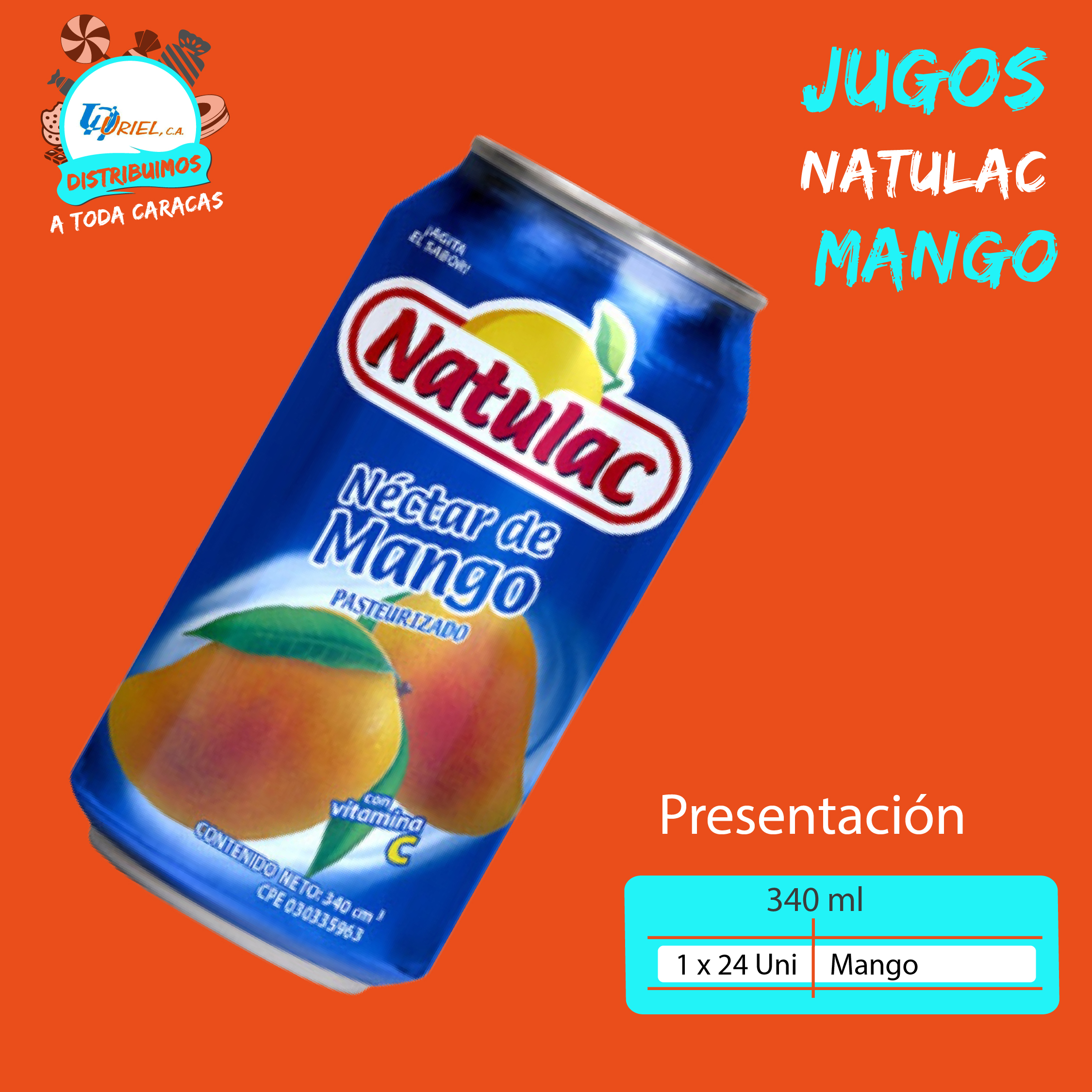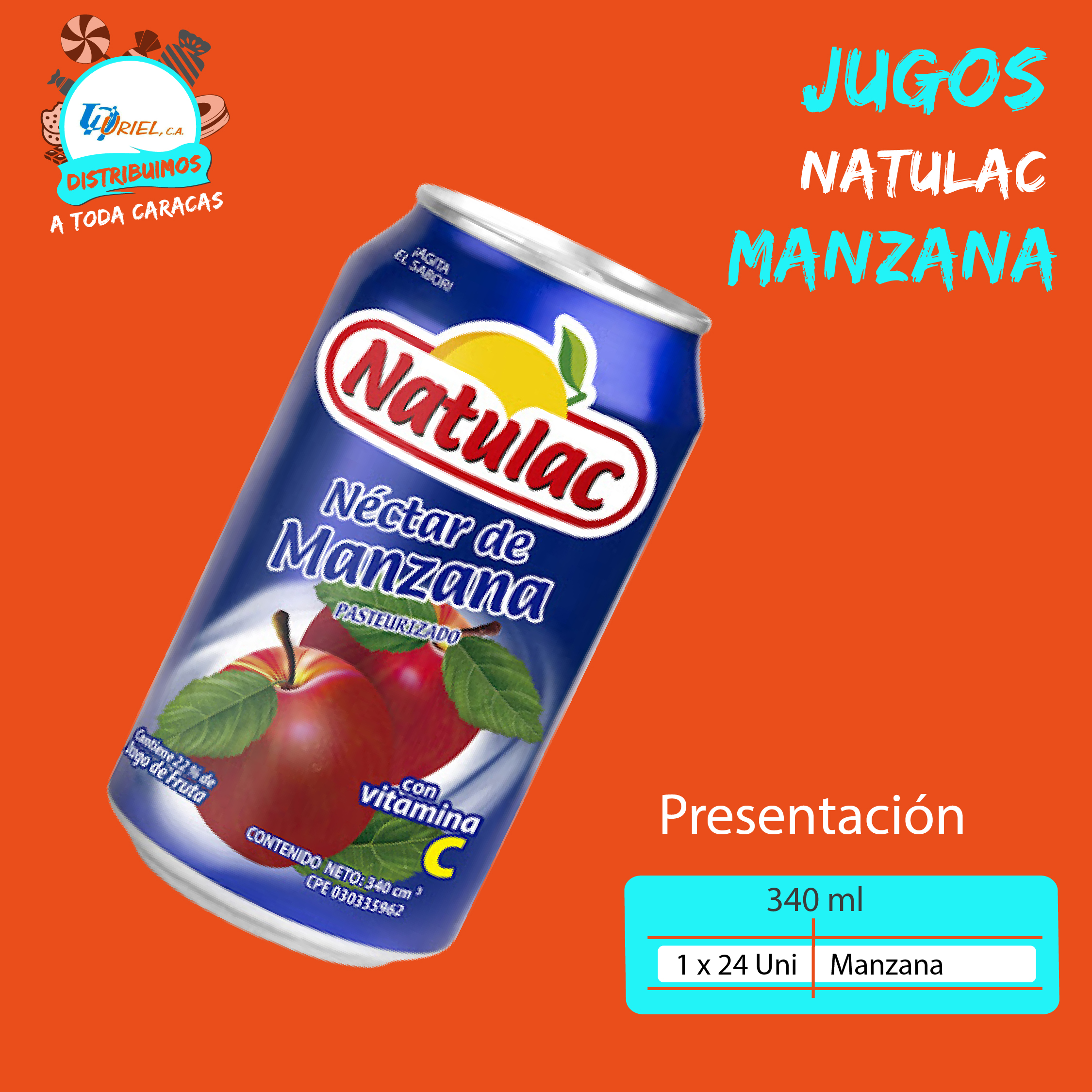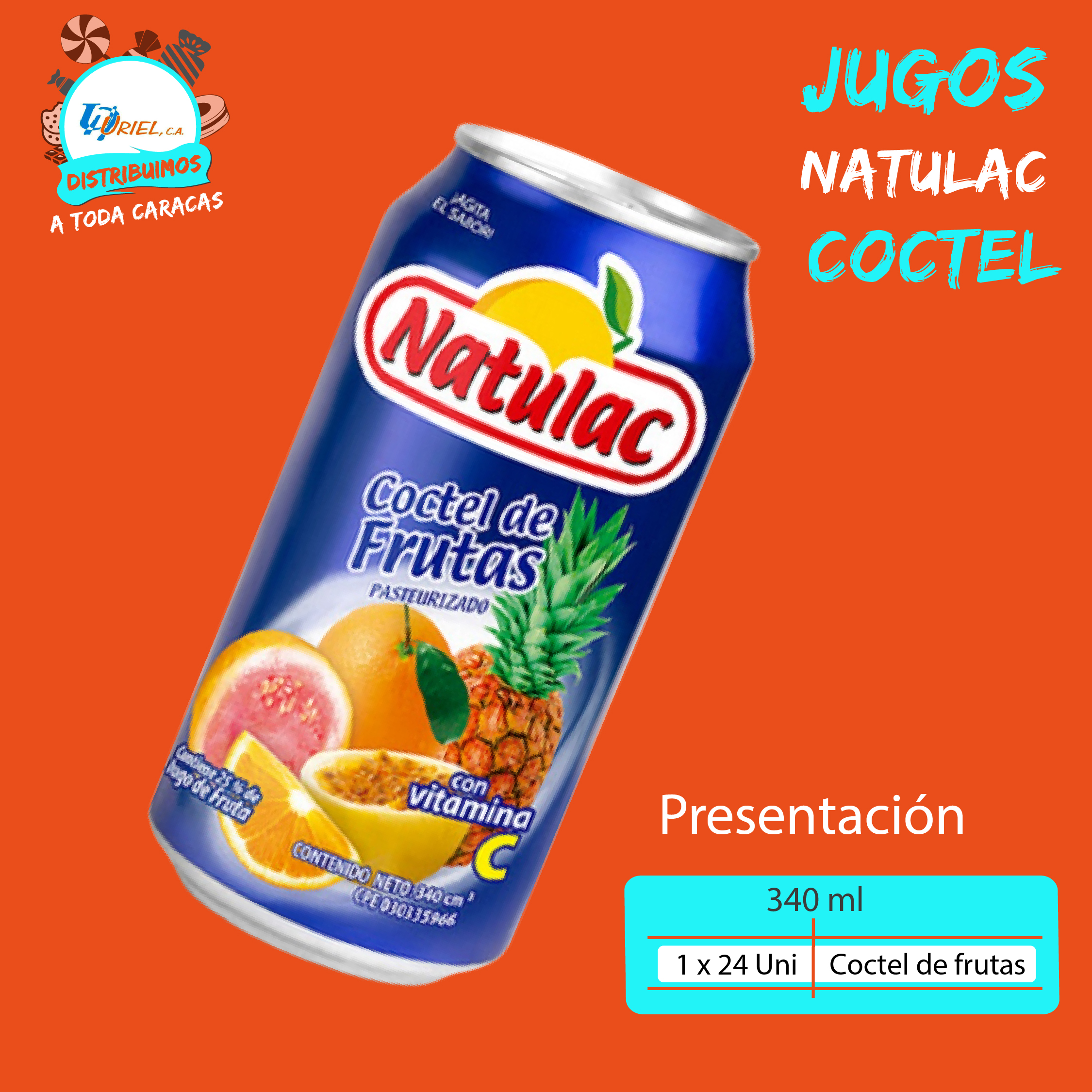 Jugos de Frutas Natulac Lata de 340 ml sabor a: Manzana, Pera, Durazno, Coctel de Frutas, Naranja, Mango, Tamarindo y Guayaba.