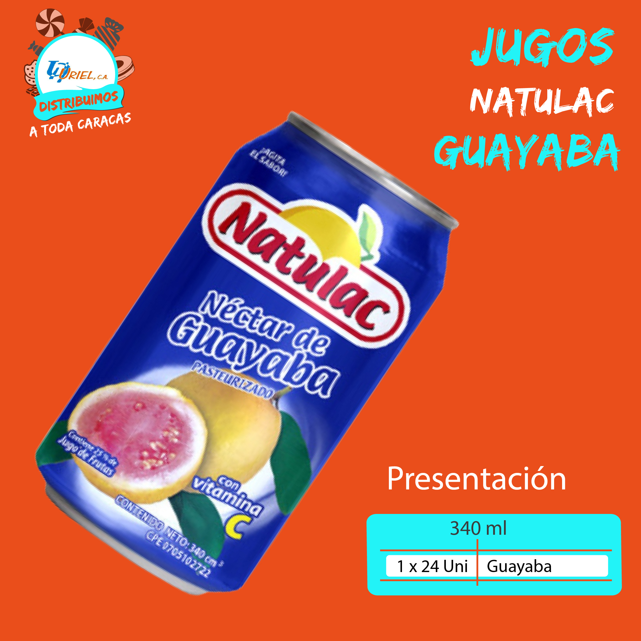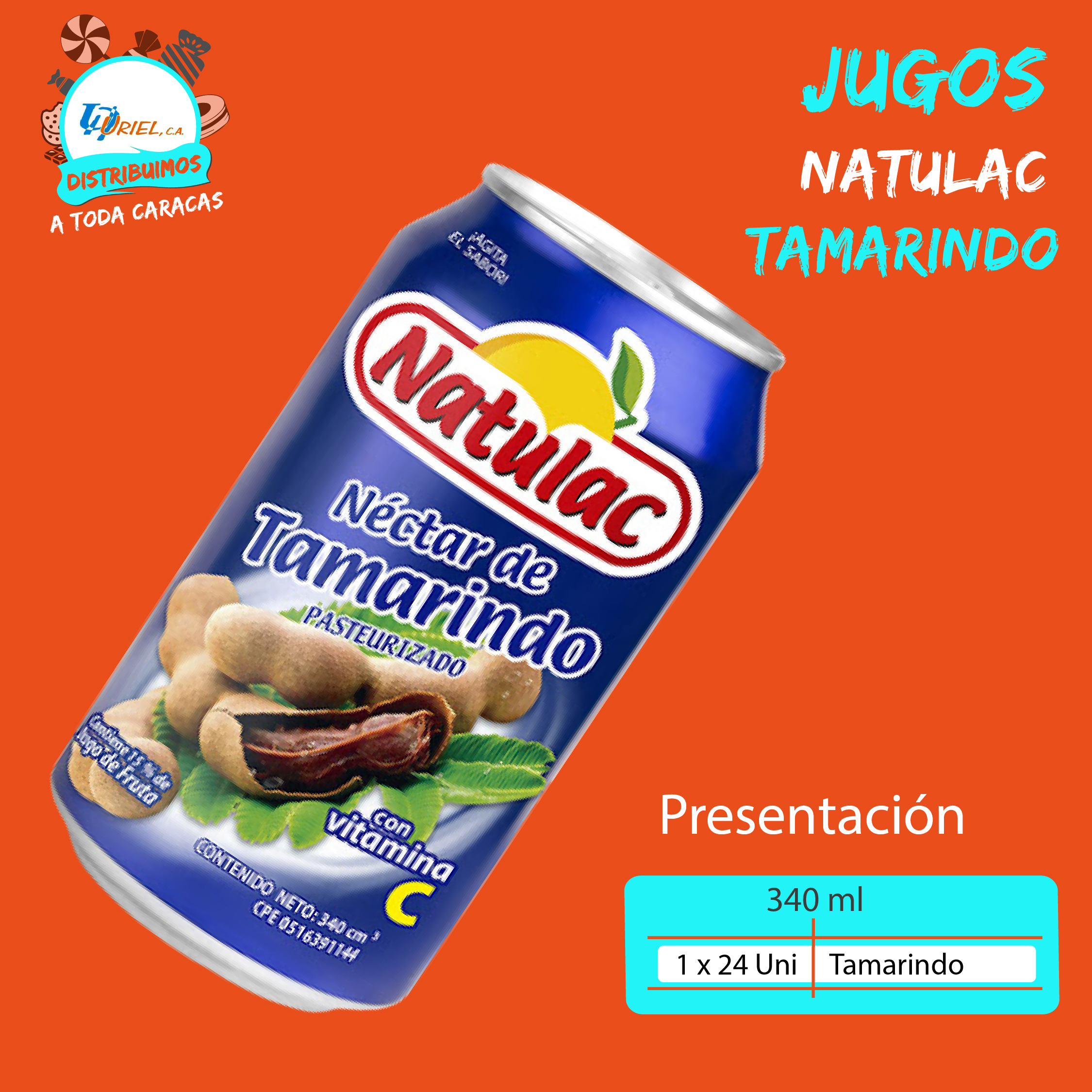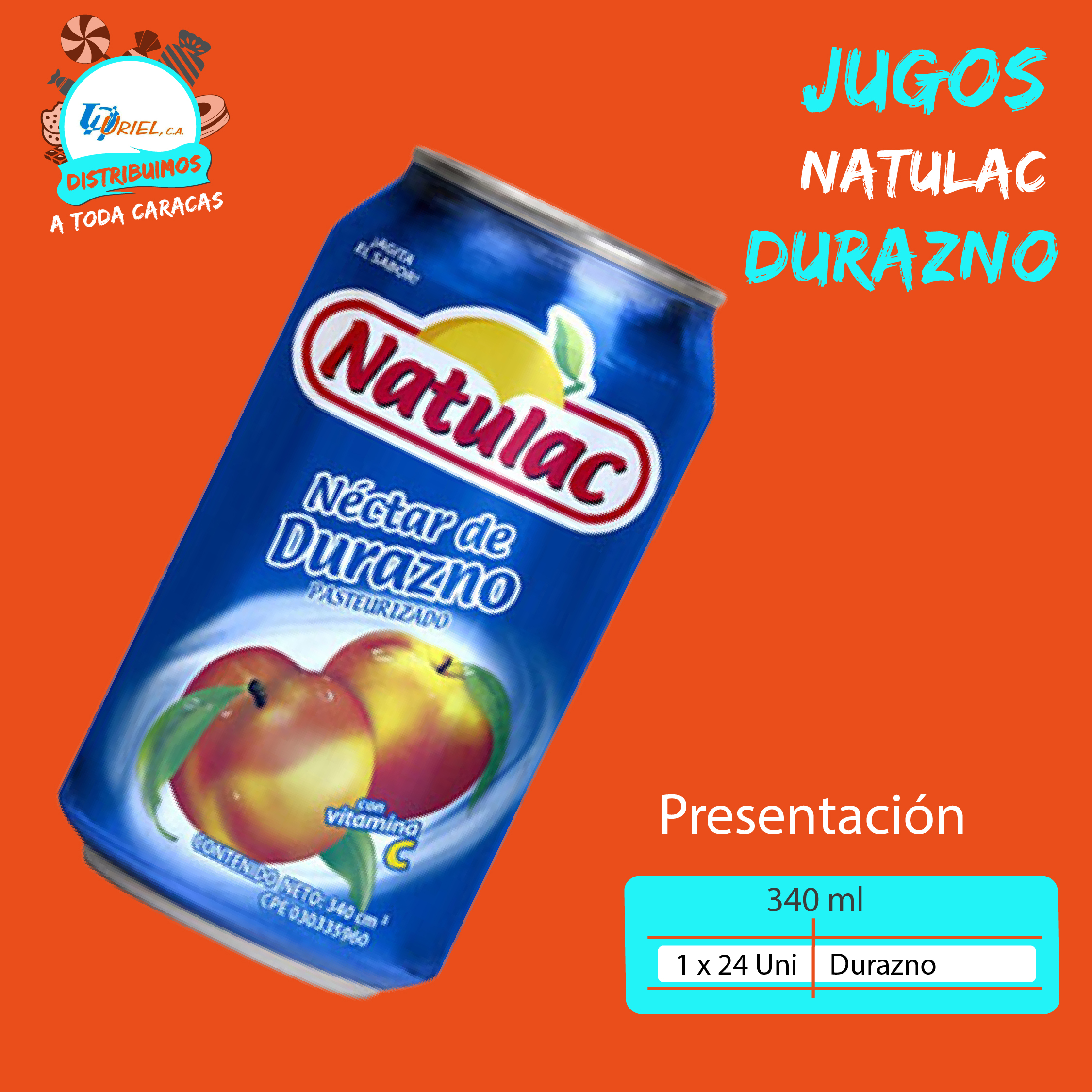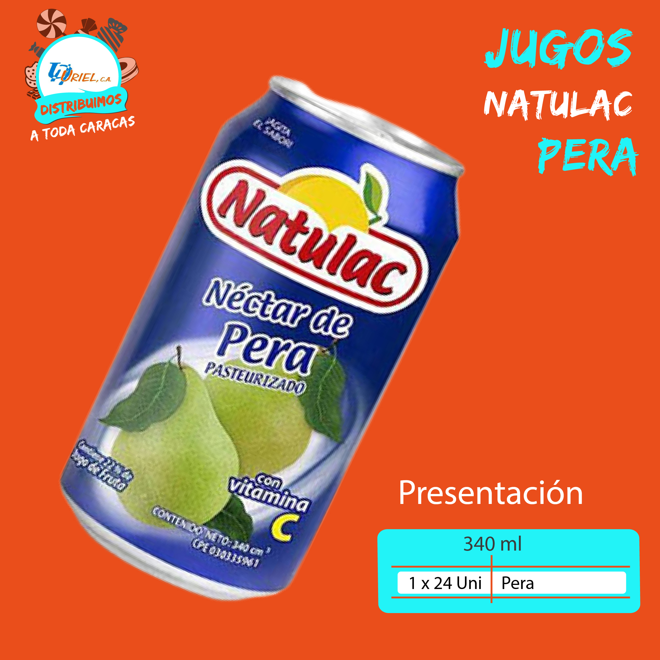 Jugos de Frutas Natulac Lata de 340 ml sabor a: Manzana, Pera, Durazno, Coctel de Frutas, Naranja, Mango, Tamarindo y Guayaba.