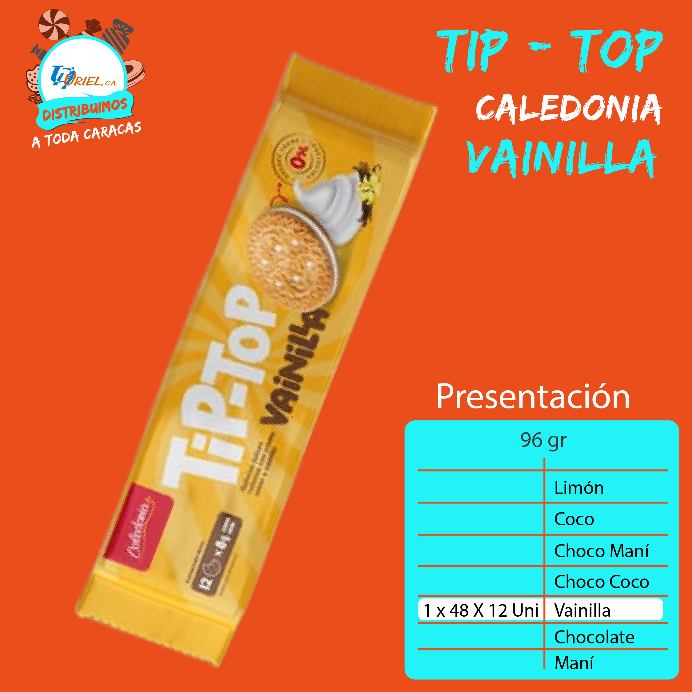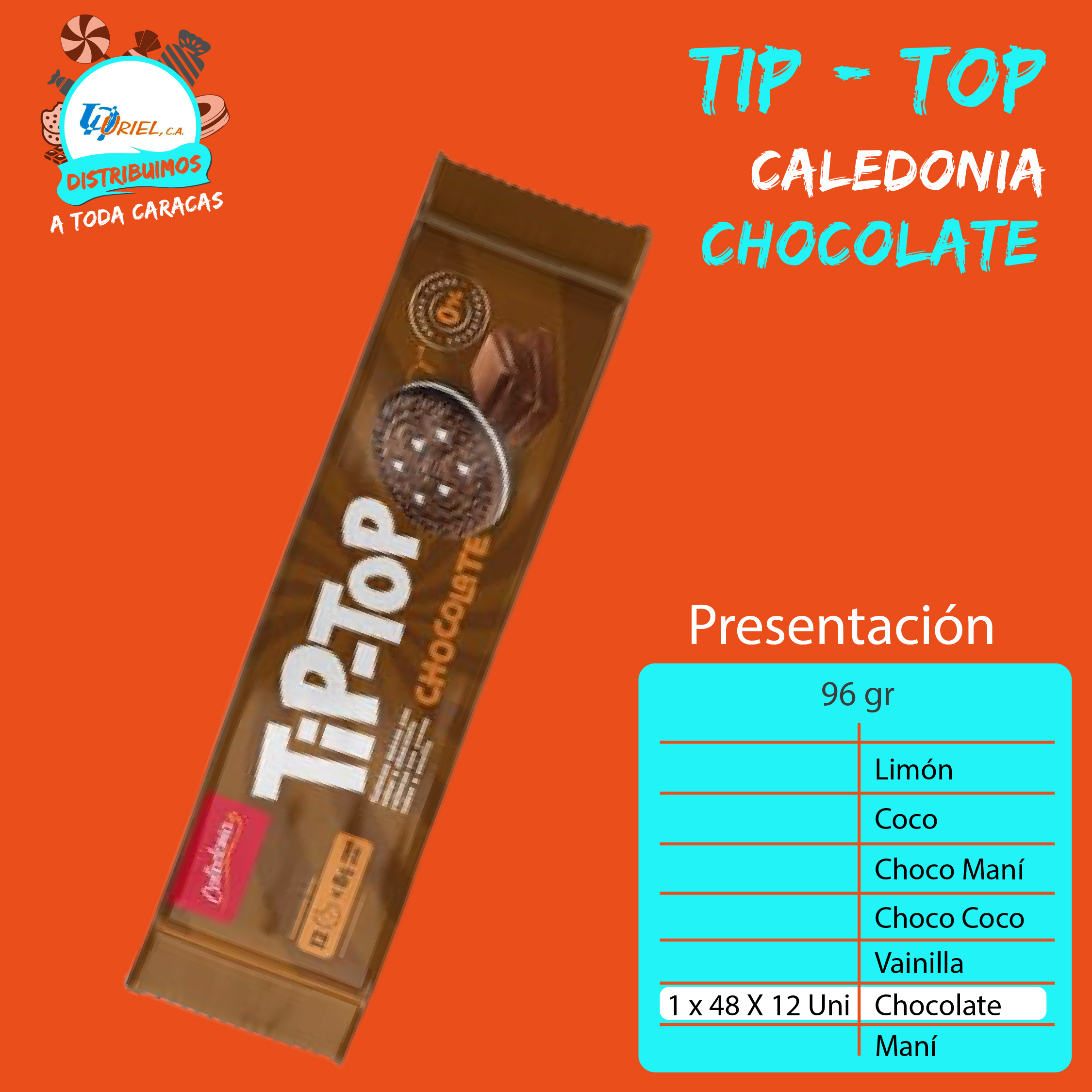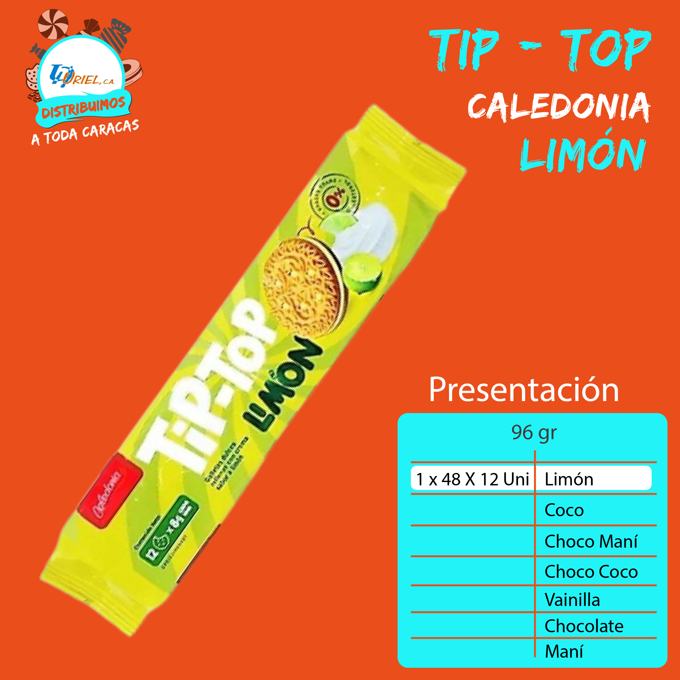 Tip Top con un sabor para cada gusto: Chocolate, vainilla, maní, choco maní, coco y ahora también limón y choco-coco. En empaque familiar. Peso 96 g.